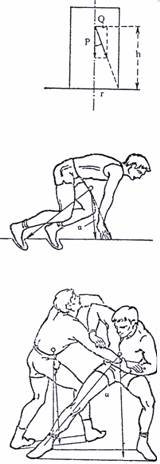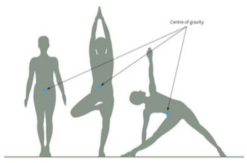 Ако човек е изправен, то центърът на тежестта му се намира по средата на стъпалата му и в средата на двете стъпала. Ако такъв човек се повдигне на пръсти, то центърът на тежестта му отива на нивото на основата на палците на краката и пак е по средата между двете стъпала. Но забележете – когато човек се е изправил на пръсти, контактната площ на стъпалата му със земята е доста по-малка, отколкото когато е стъпил здраво на земята. Поради това, човек, който се е повдигнал на пръсти е по-лесно да бъде изваден от равновесие (центърът на тежестта по-лесно може да бъде изваден извън площта на контакт на стъпалата със земята).